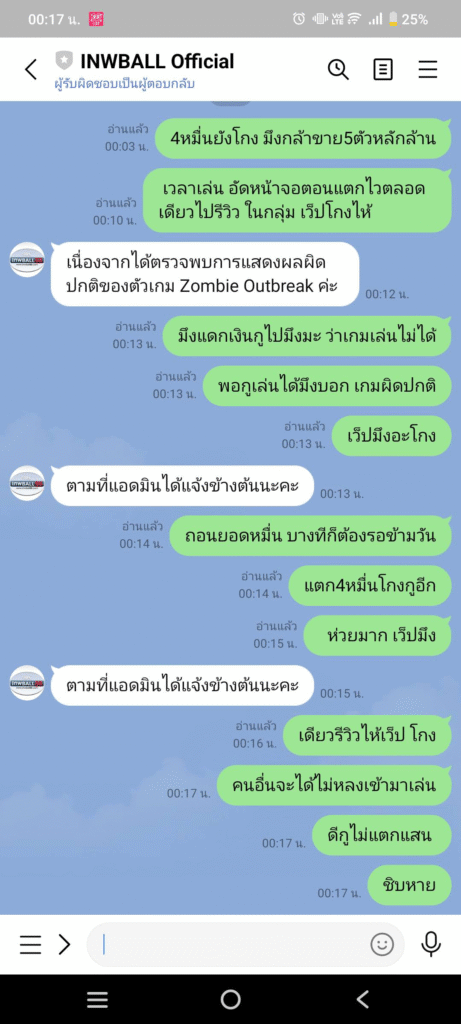 เหตุผลที่โดนโกง : ถอนไม่ได้ อ้างตรวจพบการแสดงผลผิดปกติของตัวเกม เลยไม่จ่าย